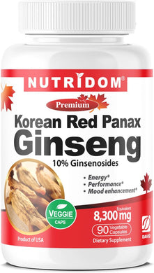Panax Ginseng rojo coreano 8,300 mg por día, 10% de ginsenósidos, sin OMG, vegano, sin gluten, sin soja y sin lácteos, 90 cápsulas vegetales