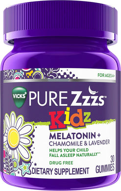 Vicks Pure Zzzs Kidz - Gomitas de melatonina con lavanda a23 y manzanilla para niños y niños, sabor a bayas naturales, 0.5 mg por gomita, 30 unidades a23