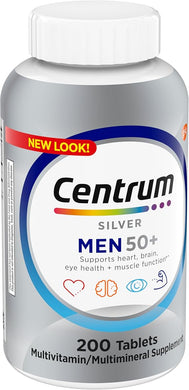 Centrum Silver Men's 50+ Multivitamínico con vitamina D3, vitaminas B, zinc para memoria y cognición, 200 tabletas