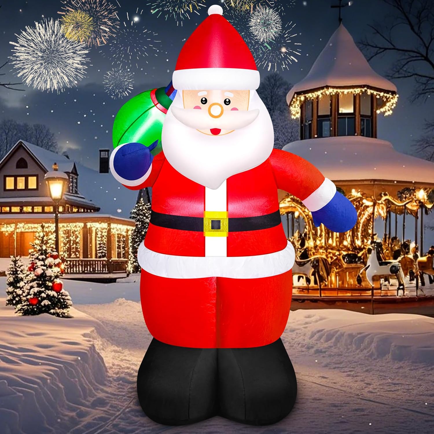 - Fácil instalación: configurar nuestras decoraciones inflables de Navidad para exteriores es muy fácil. Viene con un soplador de aire incluido que infla la figura de Papá Noel en solo minutos. Las bolsas de agua, las estacas duraderas y las correas proporcionadas garantizan que se mantenga en su lugar de forma segura durante toda la temporada navideña.
