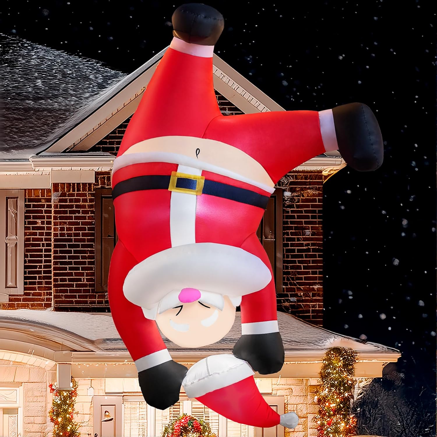 • La bolsa de regalo de Santa Santa inflable de Navidad gigante con luz LED incluye un Santa Santa inflable de 6 pies con una bolsa de arena fija, 2 cuerdas de sujeción, 4 estacas de tierra y un enchufe con certificación UL.