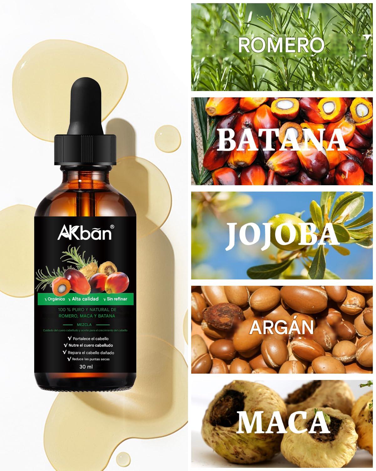 - Efectos más fuertes: la investigación muestra que tanto el aceite de romero como el aceite de batana son conocidos por aumentar el grosor del cabello, alargar el cabello, nutrir el cuero cabelludo, proteger el cabello, etc. Esta mezcla de aceite para el cabello contiene 5 ingredientes, incluyendo romero, botana, maca, jojoba y argán. Enriquecido con una variedad de nutrientes e ingredientes nutritivos que el cabello necesita, desbloquea todo el potencial de tu cabello, el cuidado se lleva al siguiente nivel.