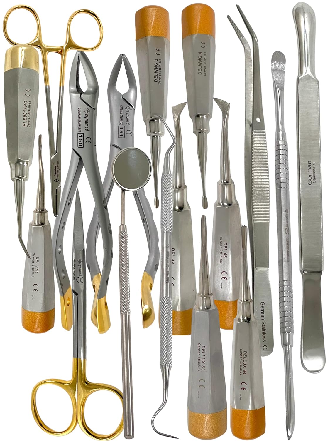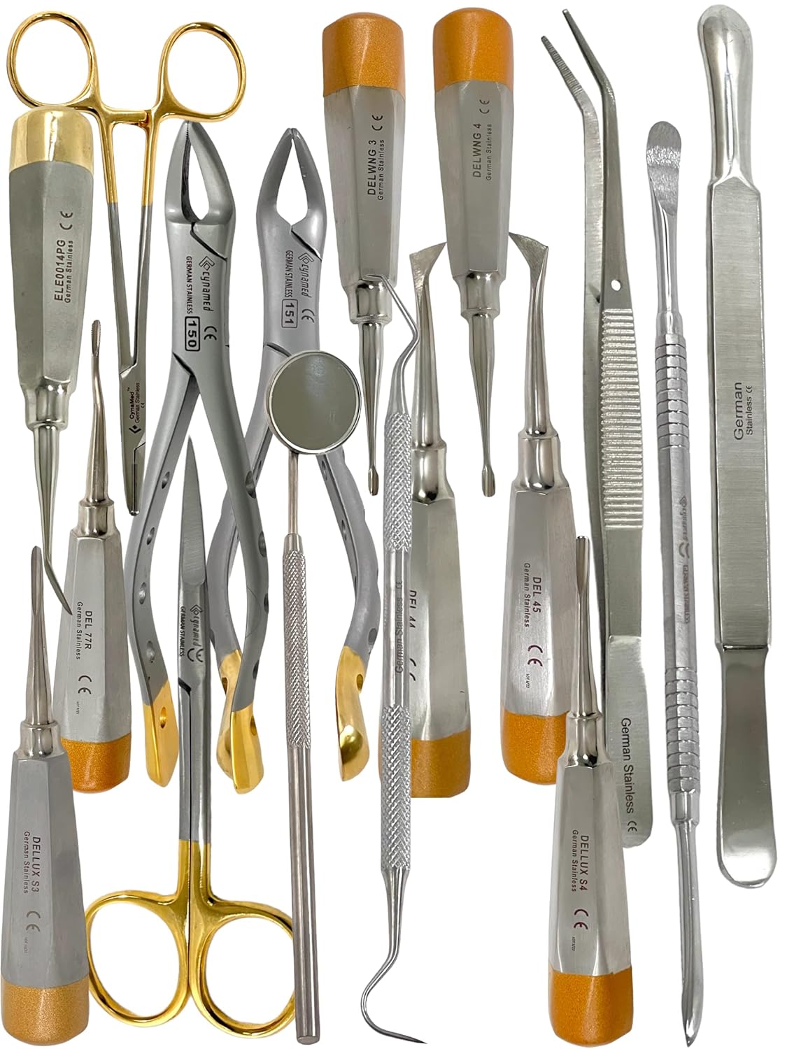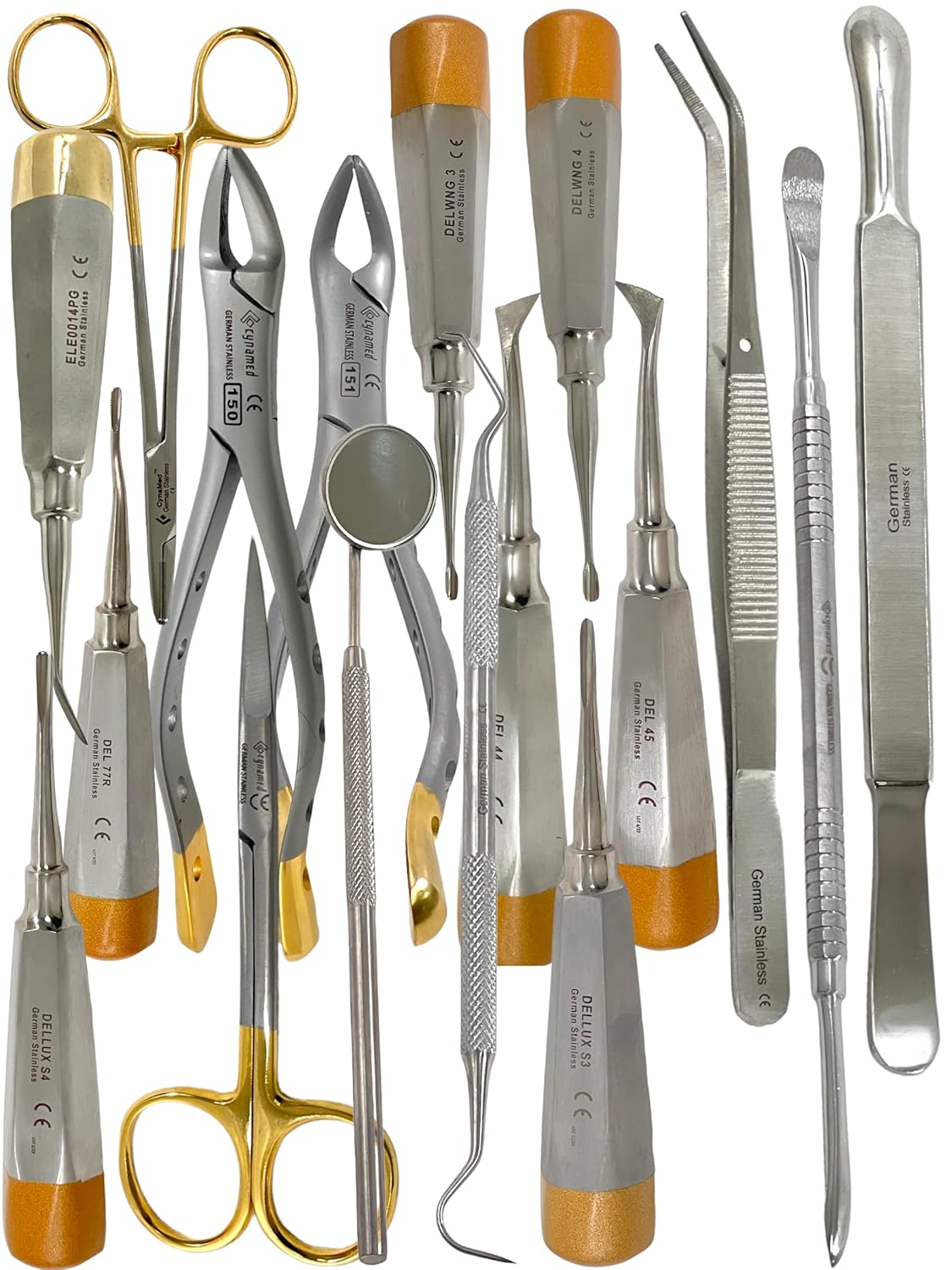 - ARTLAB-Premium German Dental Extracting Forceps Elevadores dentales, portaagujas, tijeras, jeringuillas, kit de instrumentos dentales incluye lo siguiente - El paquete incluye: Como seleccionas en el menú desplegable, opciones de variación