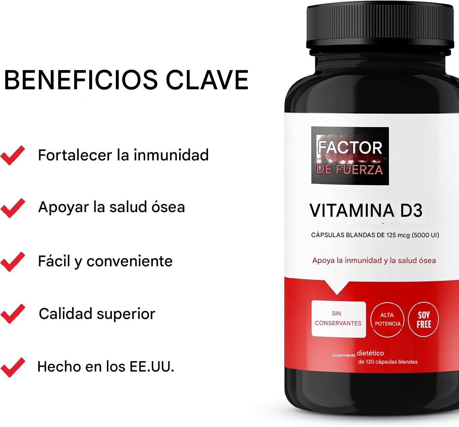 FÓRMULA DE ALTA POTENCIA: Las vitaminas de la inmunidad de la vitamina D son esenciales para la buena salud y el bienestar. No te conformes con fórmulas de baja potencia. Force Factor Vitamin D3 5000 UI es una fórmula de alta potencia en la que puedes confiar.