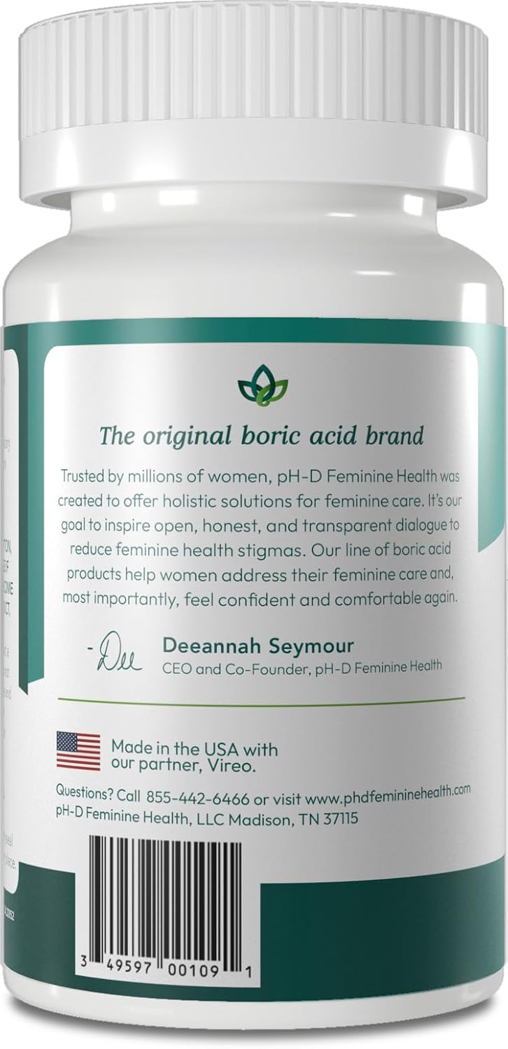 • Un cambio de juego: los supositorios de ácido bórico pH D son la marca #1 recomendada por médicos hecha con 600 mg de ácido bórico en cada supositorio. Los supositorios de ácido bórico pH-D son su opción para una solución segura, eficaz y holística para el olor vaginal.