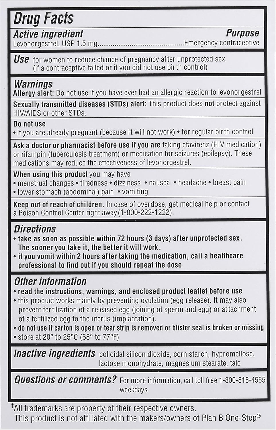 My Choice debe tomarse dentro de las 72 horas (3 días) después de una falla sexual o anticonceptiva sin protección. Cuanto antes se tome, más efectivo será.