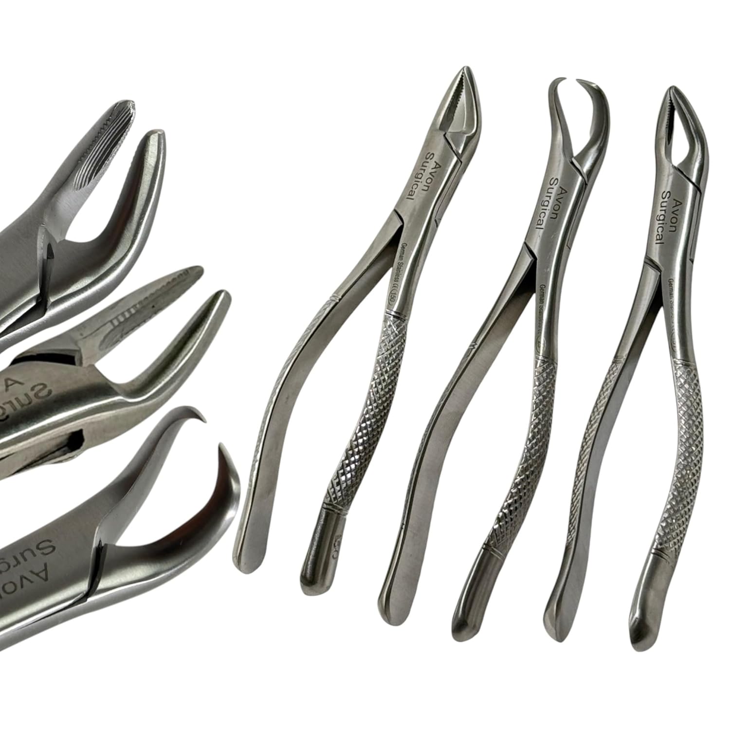 - Diseño universal: (#151) Adecuado para extraer bicúspides inferiores, incisivos y raíces. Esta versatilidad reduce la necesidad de múltiples pinzas, optimizando la configuración de tu instrumento. (#150) Adecuado para extraer bicúspides superiores, cáspides, incisivos y raíces. (#23) Adecuado para la extracción de los primeros y segundos molares inferiores.