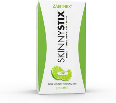 Polvo energético SkinnyStix de Zantrex: potencia el GLP-1, mejora el estado de ánimo, 10 calorías, yerba mate, granos de café, 15 Stix, lima a22