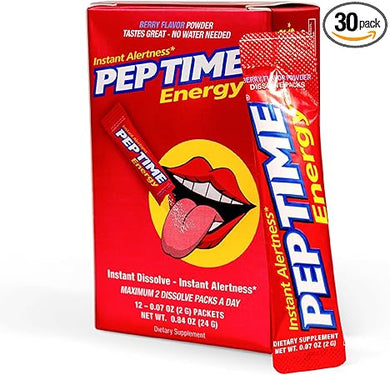 Paquetes de polvos energéticos solubles Instant Alertness, no necesitan agua, suplemento dietético energético con vitaminas B6 y B12, 150 mg de cafeína por porción, paquete de 30, sabor a frutos del bosque
