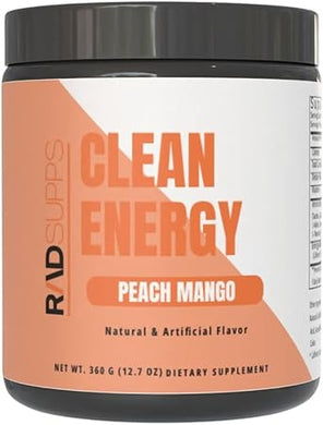 Clean Energy - Polvo pre-entrenamiento para hombres y mujeres con aminoácidos BCAA, bebida energética en polvo, polvo energético de aminoácidos para energía y concentración - 40 porciones (12,7 oz, melocotón y mango) ln25