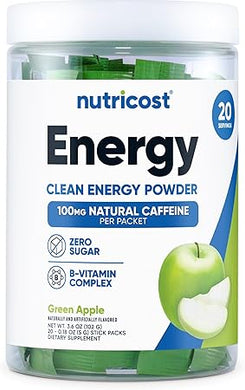 Paquete de 20 porciones de Energy Complex de Nutricost, sabor a manzana verde, sin gluten ni OGM ln25