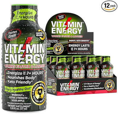 vitaminas y energía: tragos sin azúcar aptos para cetosis | Cafeína de té verde natural y limpio con mezcla patentada de resistencia | Energízate hasta por 7 horas o más - Manzana ácida - 1,93 onzas líquidas (paquete de 12) ln25
