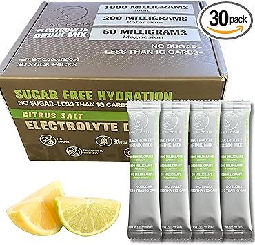 Mezcla de bebida con electrolitos: cero azúcar, sabor cítrico a limón y lima, 30 sobres de hidratación de una sola porción: polvo de hidratación cetogénico, vegano, sin OGM, sin azúcar, con electrolitos y minerales ln25
