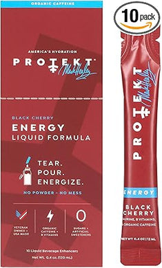 Bebidas energéticas sin azúcar PROTEKT: mezcla natural de bebidas energéticas cetogénicas, bebida líquida con vitamina B, bebidas con cafeína orgánica, bebida energética sin azúcar: sobres de cereza negra de Mark Healey, paquete de 10 ln25
