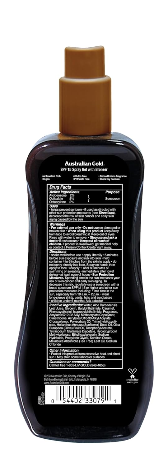 Protector solar en gel en aerosol con bronceador instantáneo SPF 15, 8 onzas