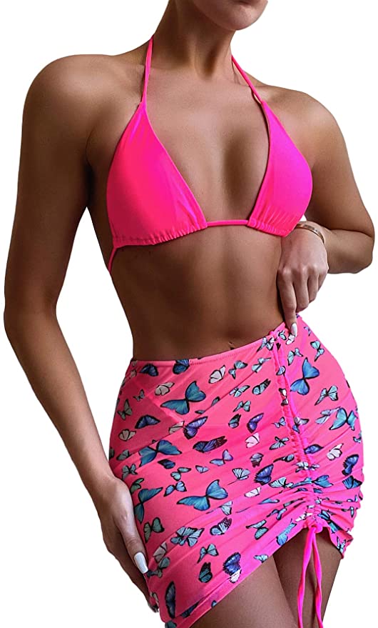 Características: Tirantes delgados, para atar, parte superior triangular, falda de playa, la almohadilla de pecho se puede quitar, a la moda.