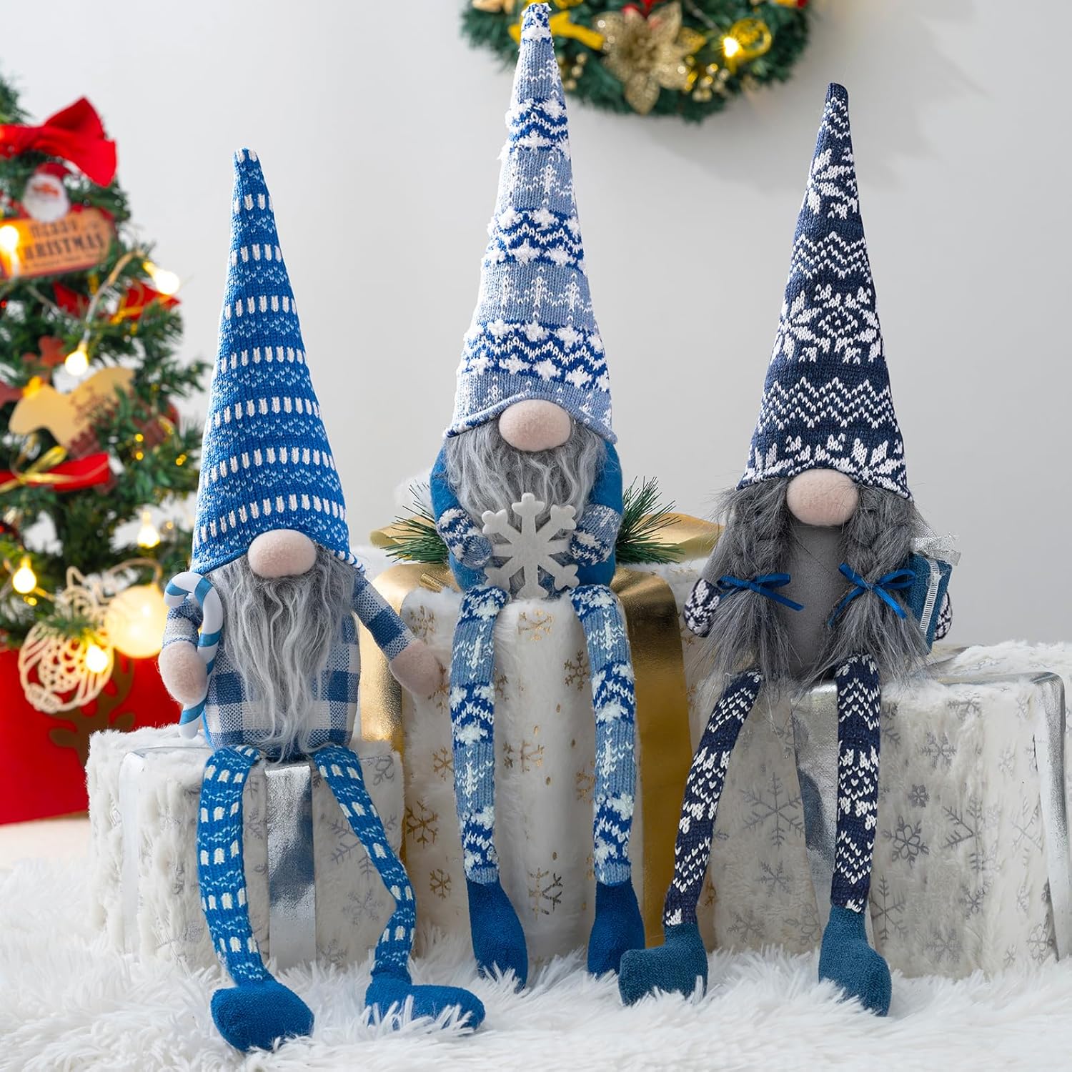 • 3Pcs Handmade Gnome Plush para Navidad: Los Gnomos Navideños Azules siempre defienden el calor y la esperanza del invierno, y también protegen a la gente del hambre y el frío. Con 3 estilos preciosos, estos peluches de peluches de Namás de Mr y Mrs Long Leg tienen un precio adorable, solo añadelos al carrito, tú y tu familia no solo estaréis contentos con ellos, sino que también tendréis suerte el próximo año.