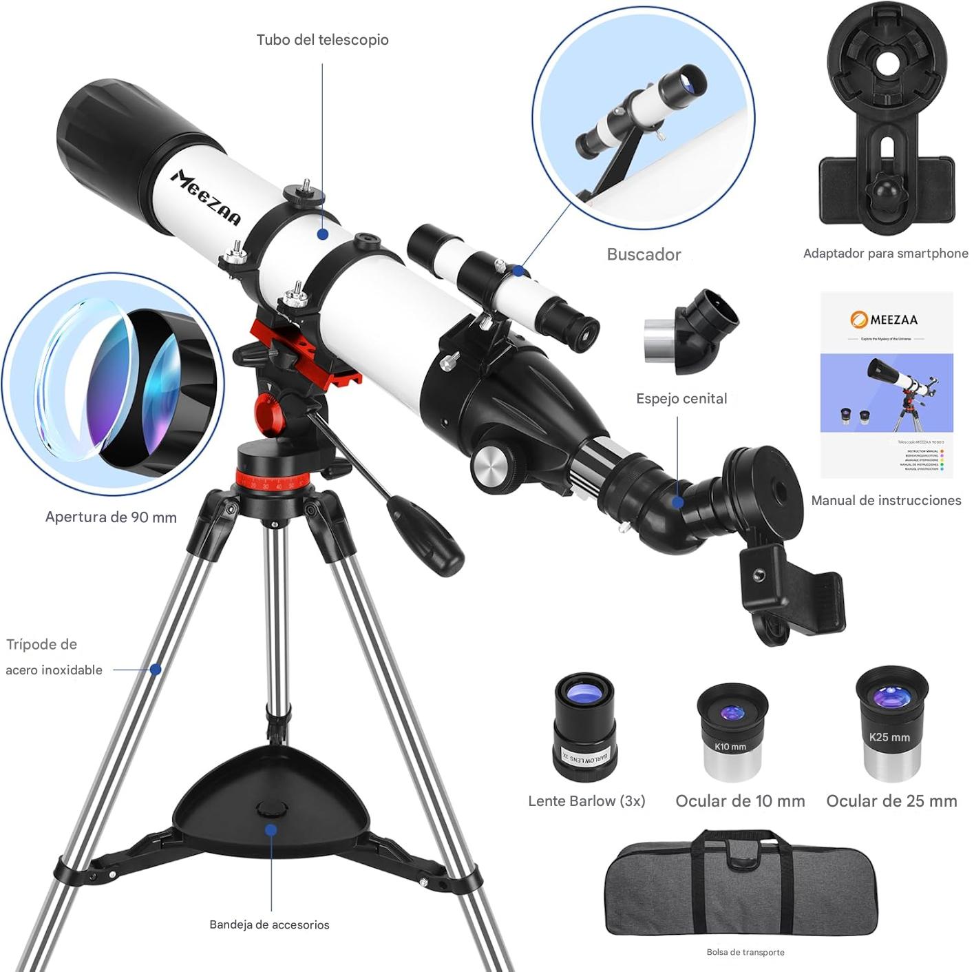 • Telescopio refractor astronómico profesional: si estás interesado en la astronomía o te gusta explorar el cielo nocturno, el telescopio astronómico MEEZAA es para ti. Un telescopio perfecto para adultos principiantes en astronomía para explorar la naturaleza y el universo