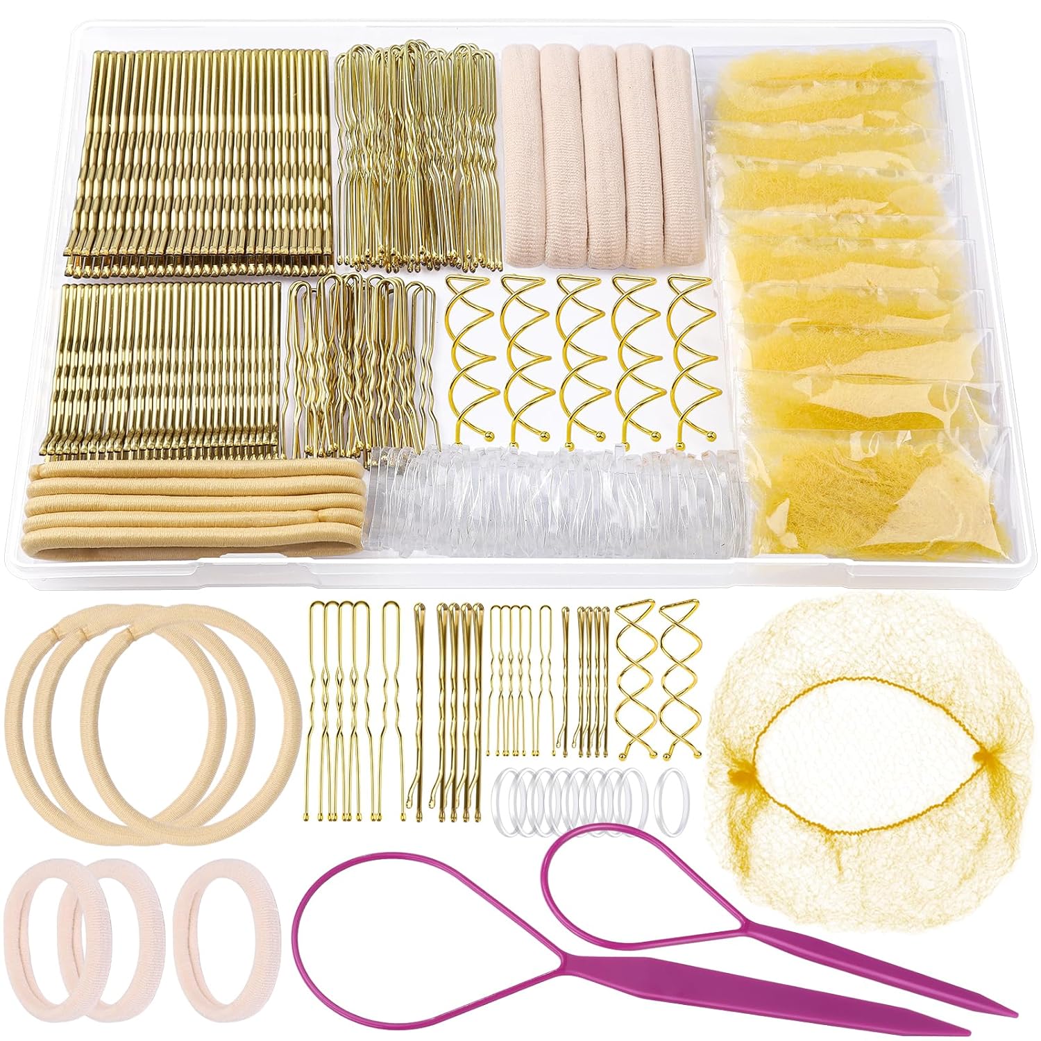 • Adecuado para múltiples ocasiones: este conjunto de pelo es muy práctico y queda con casi todo el mundo. Ya sea para competiciones de baile, entrenamiento de ballet, eventos ecuestres, ropa diaria o el gimnasio, lo maneja todo con facilidad. Varias horquillas se guardan en una funda de plástico para un uso cómodo en movimiento