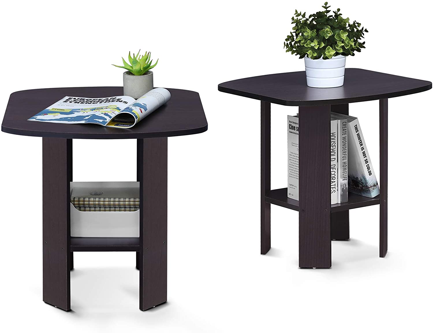 Mesa auxiliar de diseño simple, Madera, Marrón oscuro 2 Unidad  NDP 3