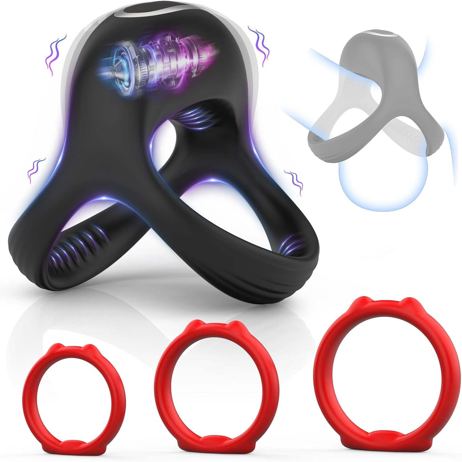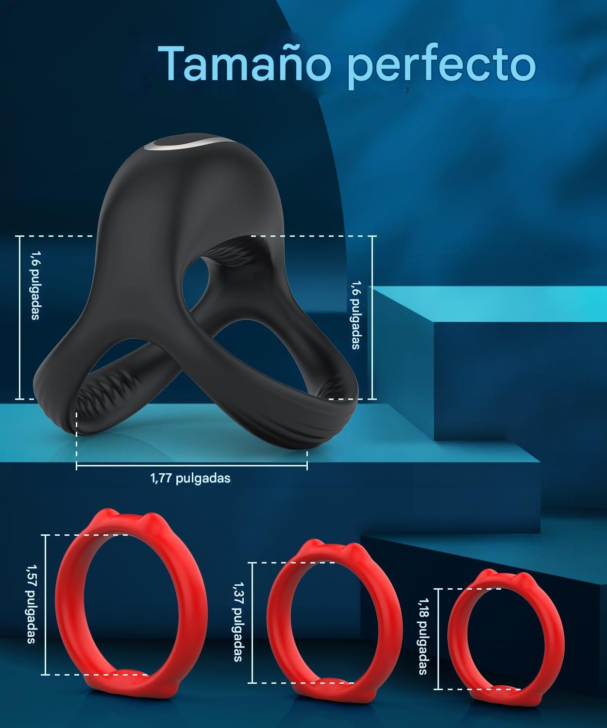 El juego de anillos vibradores para el pene, hecho de silicona de alta calidad, eleva tu comodidad a un nuevo nivel. Experimenta la potencia de un agarre firme y fiable mientras estos anillos de silicona te envuelven con su impresionante elasticidad.