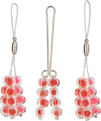 Abrazadera de clítoris - Pinzas con dije de corazón y cuentas rojas a24