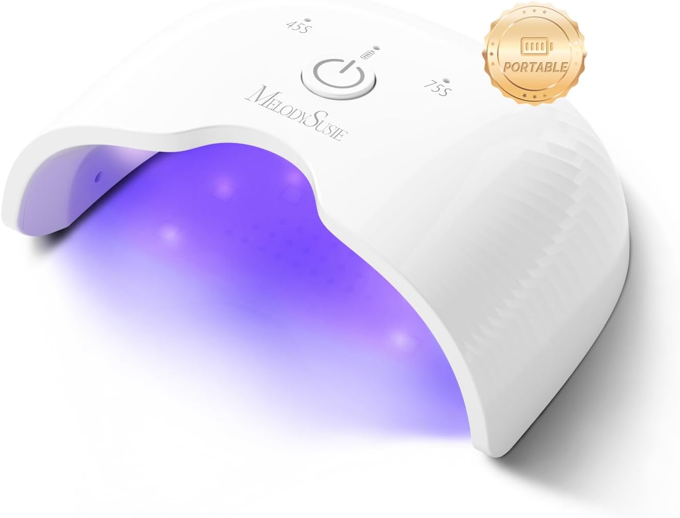 - 【CARACTERÍSTICAS PRINCIPALES】 Esta lámpara de clavos funciona con una batería incorporada de 1000mAh, que ofrece entre 3 y 5 horas de rendimiento con carga completa. El diseño ligero y el tamaño compacto supremo lo hacen fácil de transportar, ayudando a mantener tu espacio de trabajo organizado sin ocupar demasiado espacio ni preocuparte por cables desordenados. Mientras tanto, cuenta con 2 ajustes de temporizador (45s/75s) para personalizar el tiempo de curado según las distintas necesidades de diseño de uñas y un sensor inteligente para que tu manicura sea más fácil y segura. Estas características hacen de esta lámpara de uñas una herramienta esencial para cualquier principiante y artista de uñas para cuidar su uña en casa y en movimiento. Disfruta de tu viaje de creación de uñas en cualquier momento y lugar con MelodySusie a tu lado.