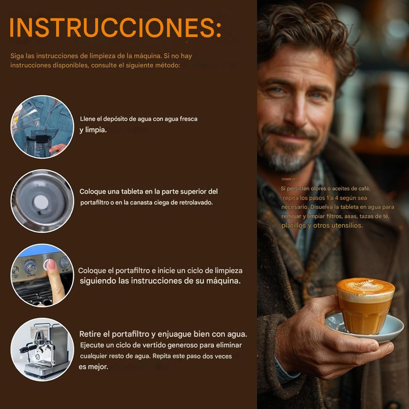 • Multiusos: Adecuado para limpiar todo tipo de máquinas de espresso, incluidas máquinas de café súper automáticas, semiautomáticas y cápsulas.