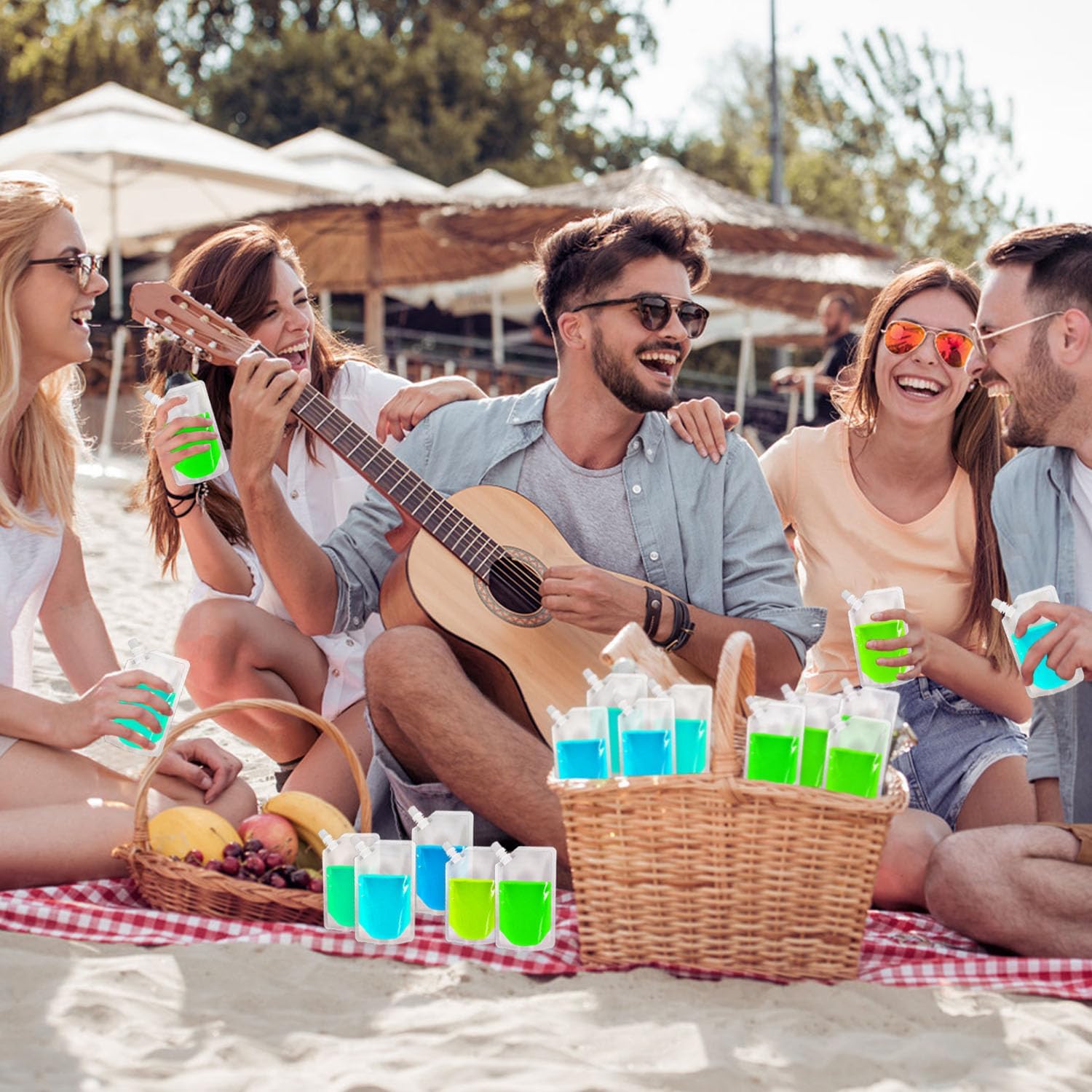 - Calidad fiable: estos frascos de plástico están hechos de material plástico de grado alimenticio con boquillas y embudos de plástico, ligeros, irrompibles y reutilizables, lo que puede ofrecerte una maravillosa experiencia de uso. Las bolsas de bebidas son congelables, por lo que puedes refrigerar tus bebidas en verano y disfrutar de una experiencia fresca