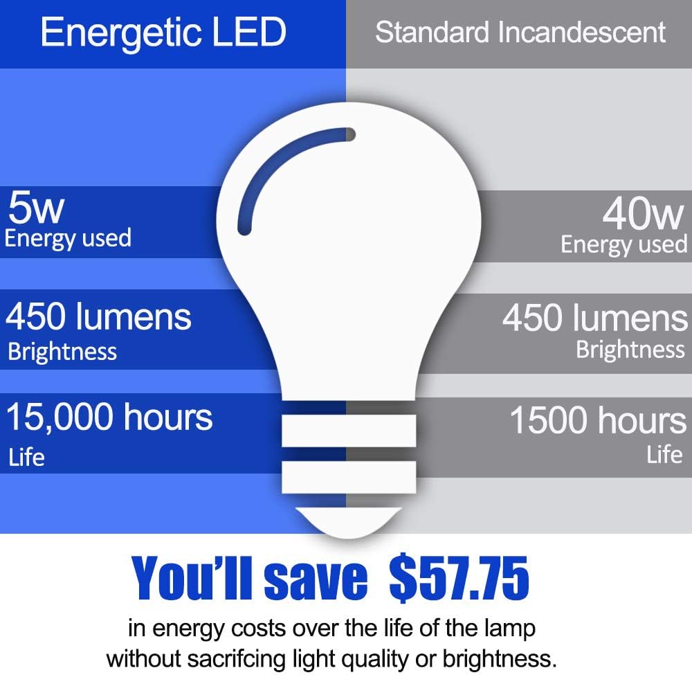 Bombilla LED A19, equivalente a 40 vatios, base media E26, bombilla LED no regulable, certificación UL A19