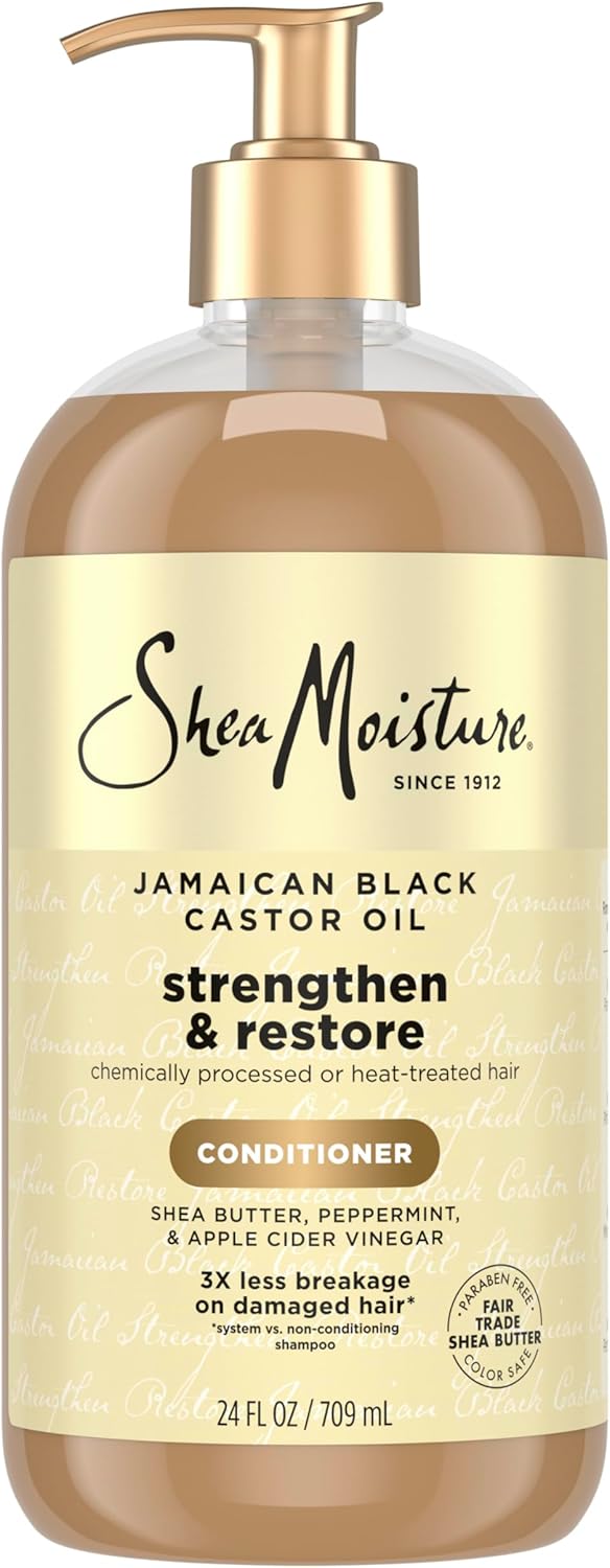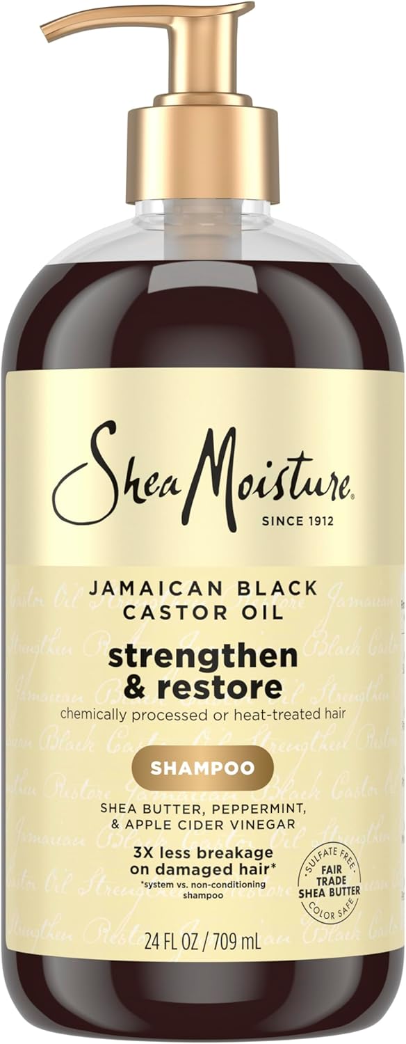 La línea de cuidado capilar SheaMoisture Jamaican Black Castor Oil Strengthen & Restore Shampoo y sus productos asociados (como acondicionador, leave-in, masque, styling lotion o gel) están formulados alrededor del aceite de ricino negro jamaicano, manteca de karité y otros ingredientes nutritivos. Esta combinación ofrece varios beneficios claves para el cabello —especialmente rizado, dañado o seco— respaldados por ingredientes naturales y libre de sulfatos/parabenos.